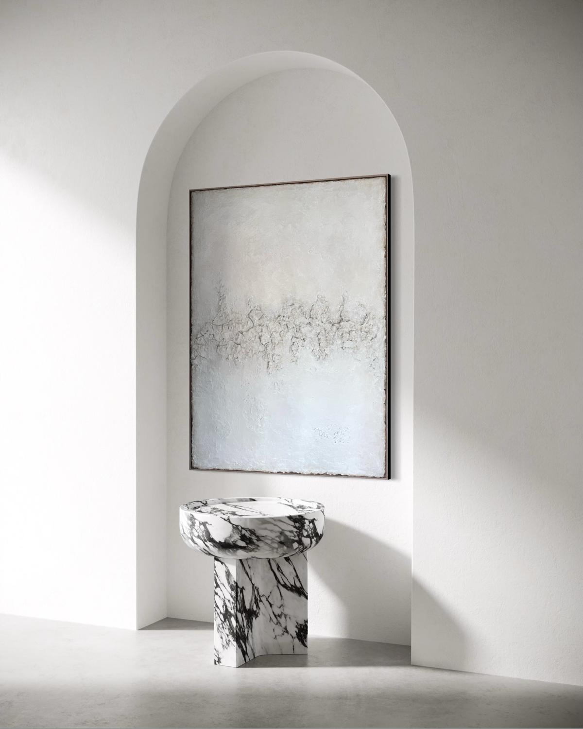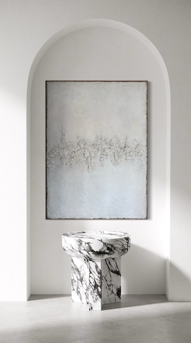 Created in response to a world that often feels fractured and loud. The surface carries cracks, wear, and erosion, not as damage, but as evidence of having endured. This piece isn’t about what’s been lost, but about what stays: steadiness, light, and the quiet strength that persists beneath the noise. A reminder that even when things feel broken, there is still something whole worth holding onto.