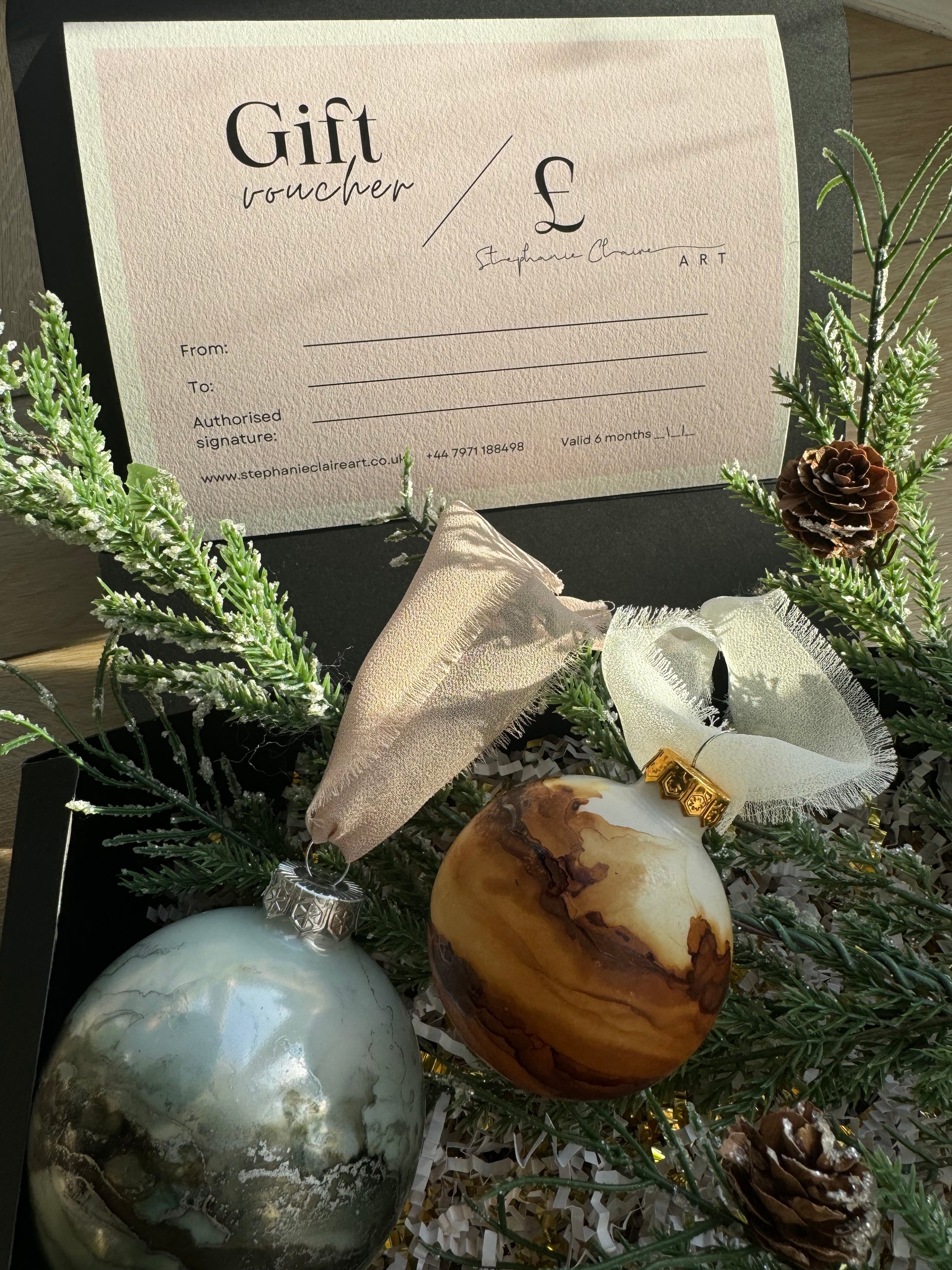 Every gift certificate purchased comes with a complimentary hand-painted Christmas bauble, wrapped in a little gift box, a keepsake made by me to make the gifting moment feel even more special.
